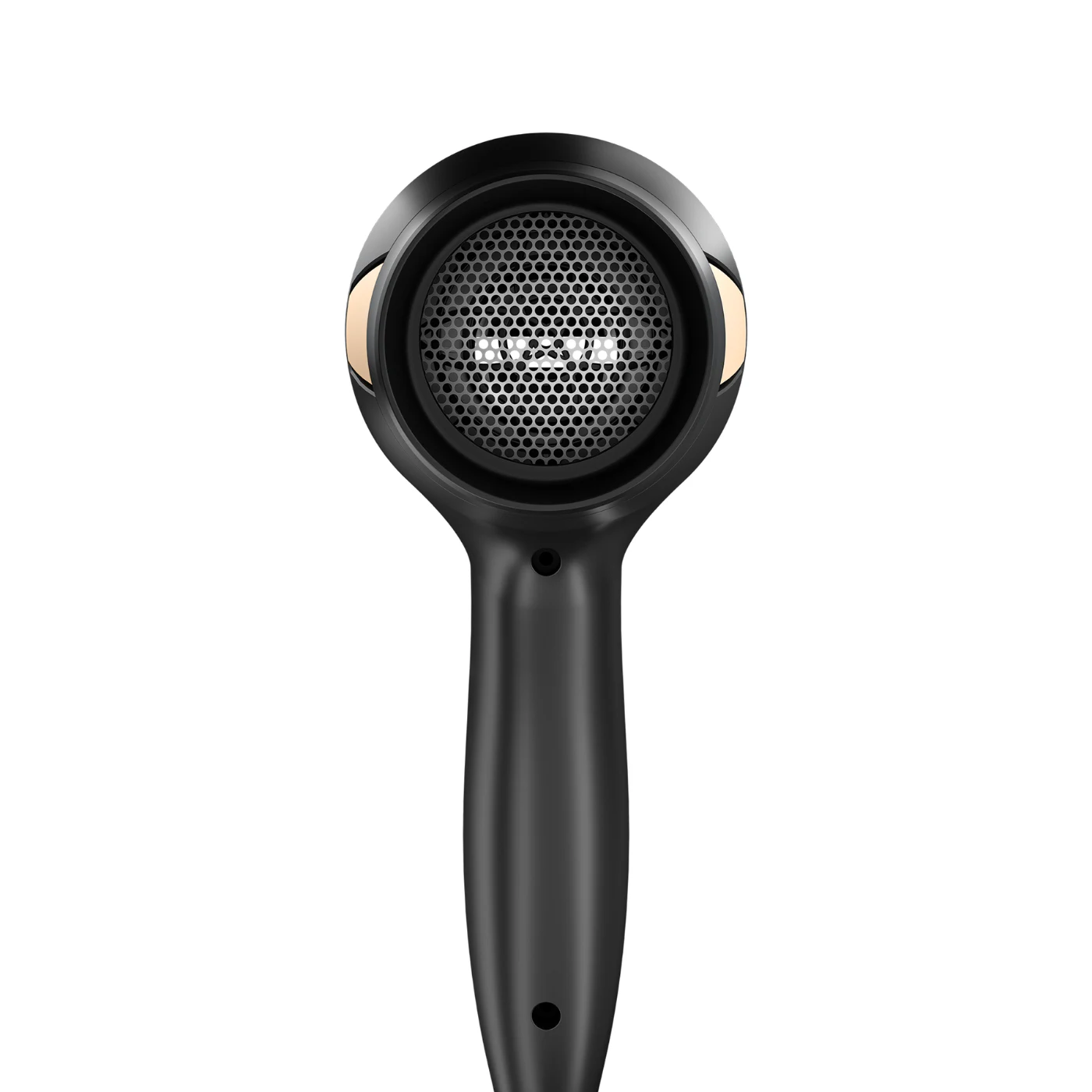 - حماية وأمان مضاعف: يتميز المجفف بعازل حراري مزدوج يضمن استخداماً آمناً ليديكِ وفروة رأسك، بالإضافة إلى حماية داخلية مزدوجة تمنع ارتفاع درجة حرارة الموتور.