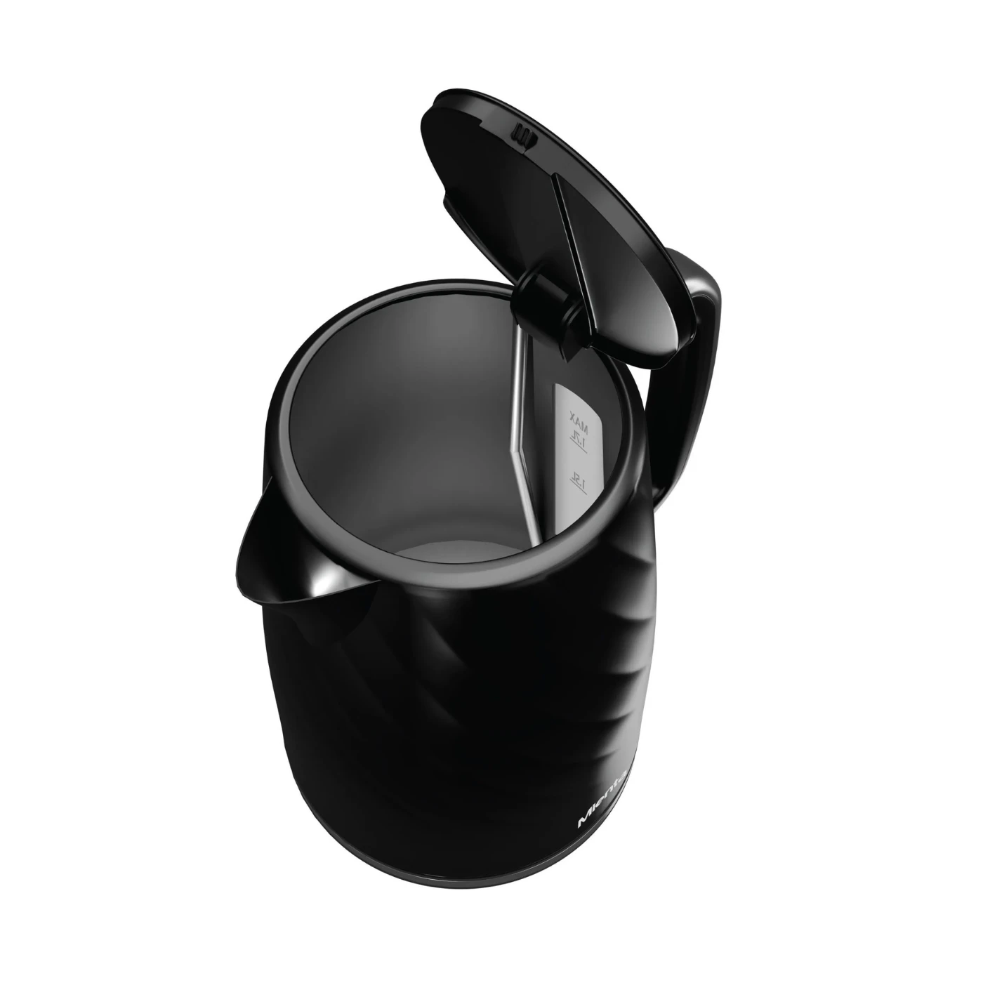 غلاية ميانتا جلاو بلاستيك بسعة 1.7 لتر، بقوة 2200 واط، باللون الأسود الأنيق، مزودة بعنصر تسخين مخفي يمنع الترسبات، فلتر قابل للإزالة، قاعدة دوارة 360°، ومؤشر شفاف لمستوى المياه مع خاصية الإيقاف التلقائي للأمان.