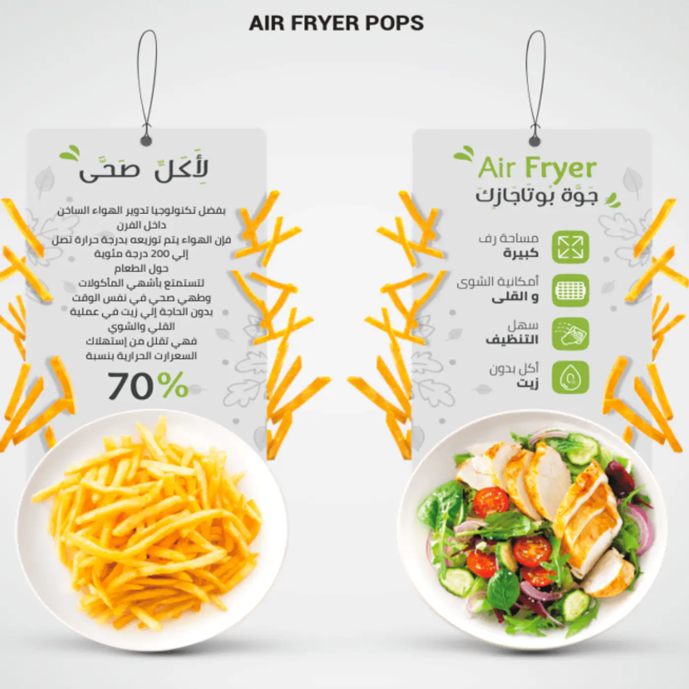 - مزود بمقلاة هوائية مدمجة للطهي الصحي