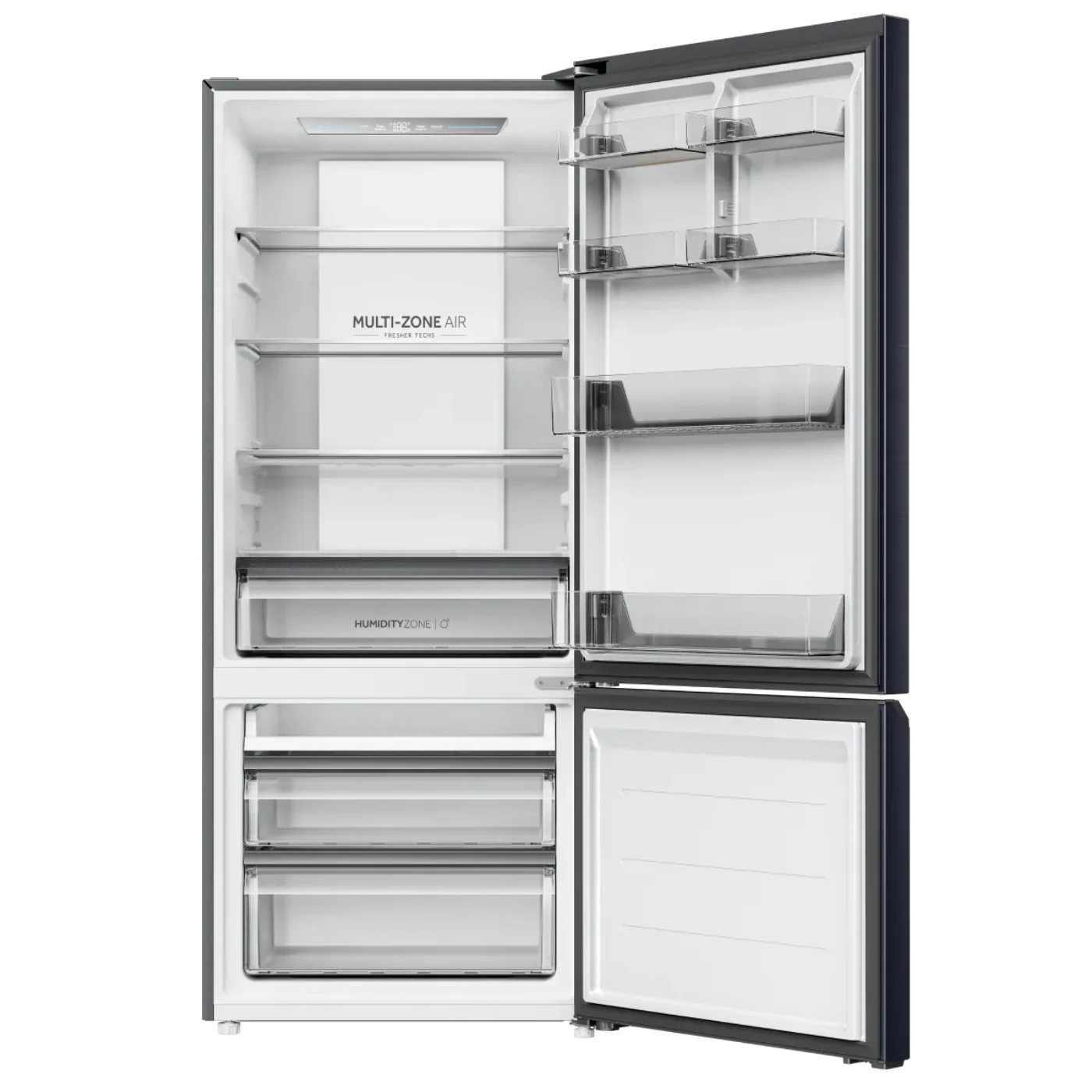 تحتوي على 4 أدراج زجاجية متينة، درج خاص لمنطقة الرطوبة مع تحكم دقيق للحفاظ على الخضروات والفواكه طازجة، بالإضافة إلى إضاءة داخلية ومقابض مدمجة تسهل الاستخدام.
