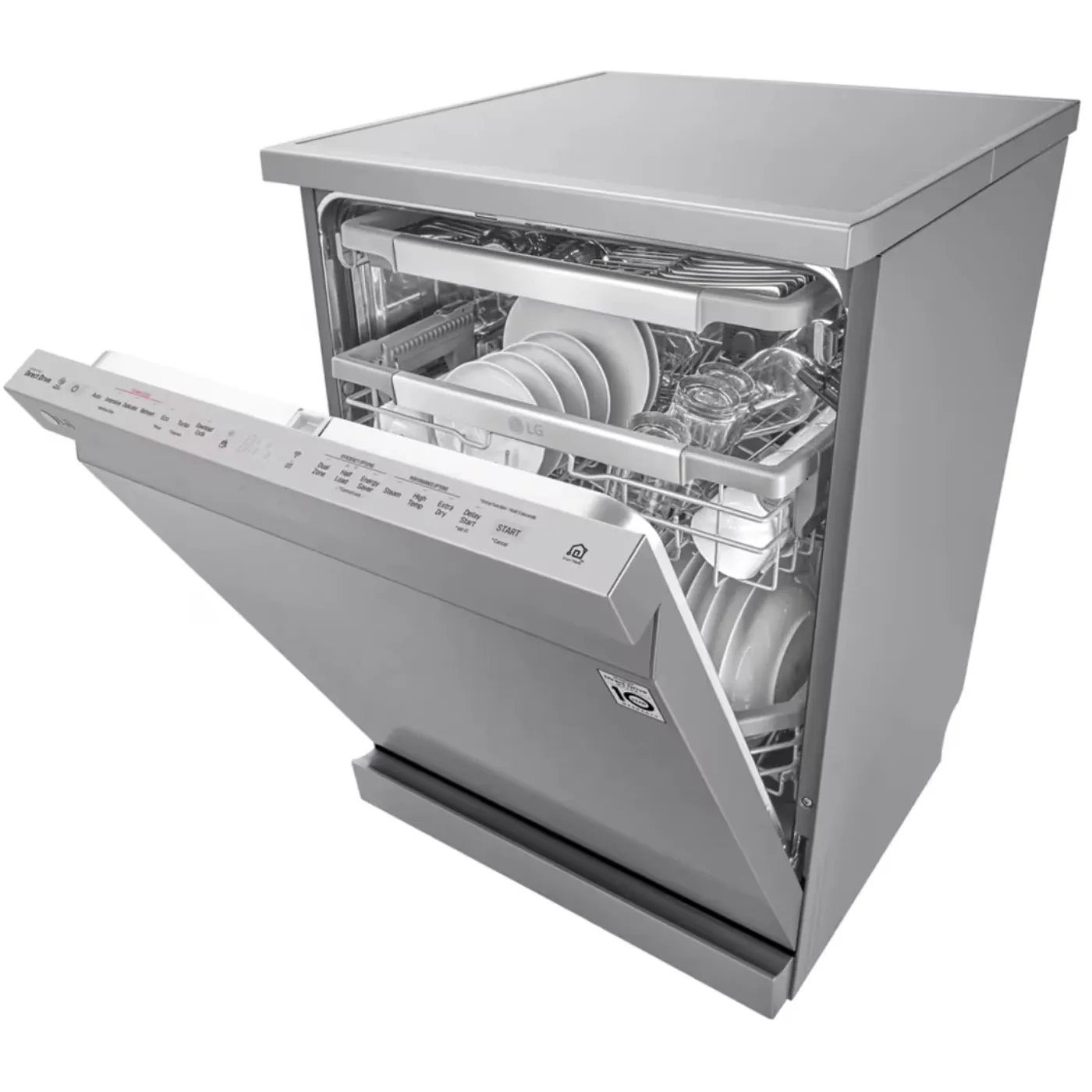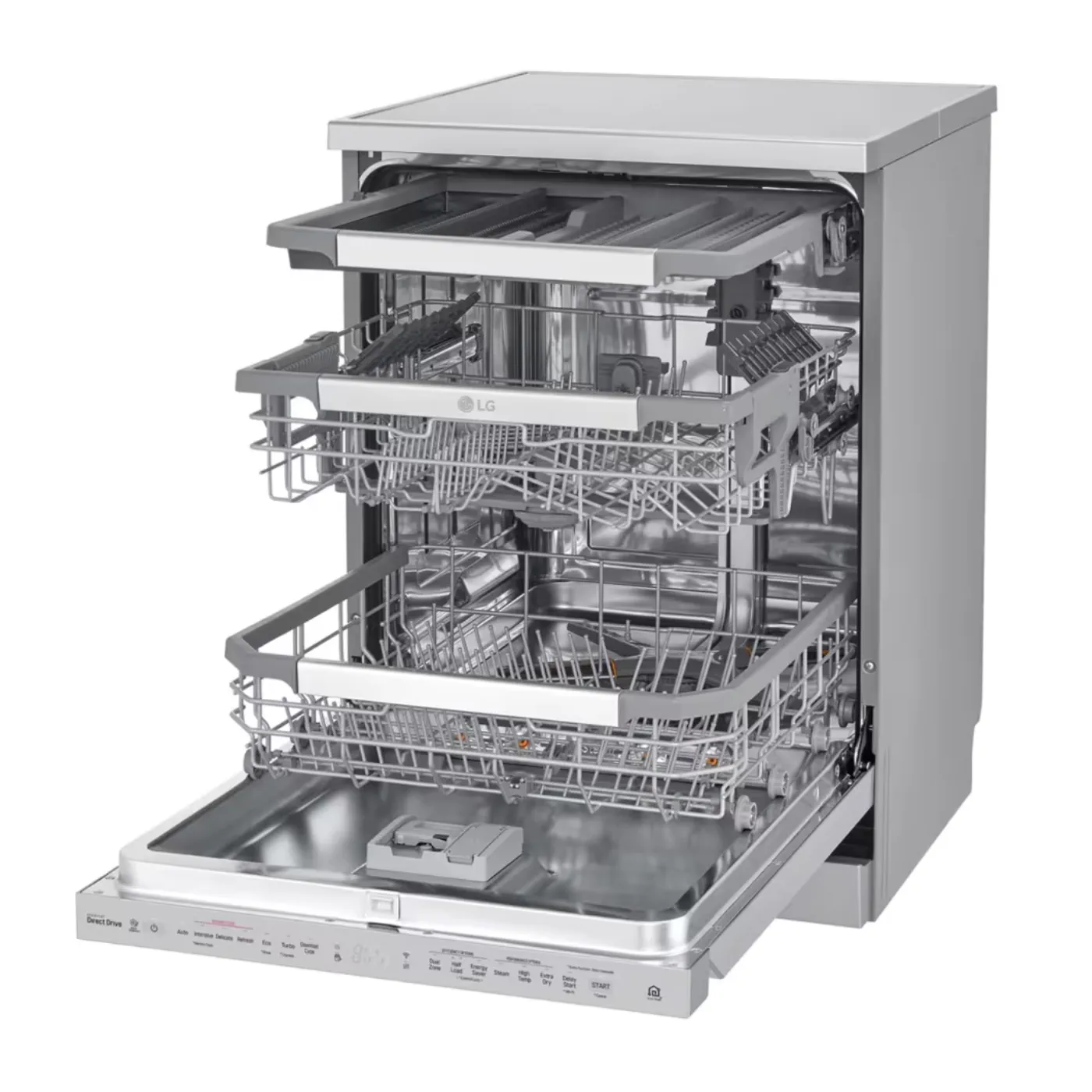 غسالة الصحون من إل جي “DFB325HS” تُعد قفزة نوعية في عالم النظافة الذكية. بفضل تقنيات QuadWash™ وTrueSteam™، تنظف أطباقك من كل زاوية وبخار نقي يزيل البقع العنيدة ويقلل بقع الماء بنسبة تصل إلى 30%. مزودة بمحرك الدفع المباشر (ضمان 10 سنوات)، نظام EasyRack™ Plus القابل للتعديل، وتقنية ThinQ™ للتحكم الذكي عبر الهاتف — كل ذلك في تصميم أنيق من الفولاذ الخالص يناسب مطبخك العصري.