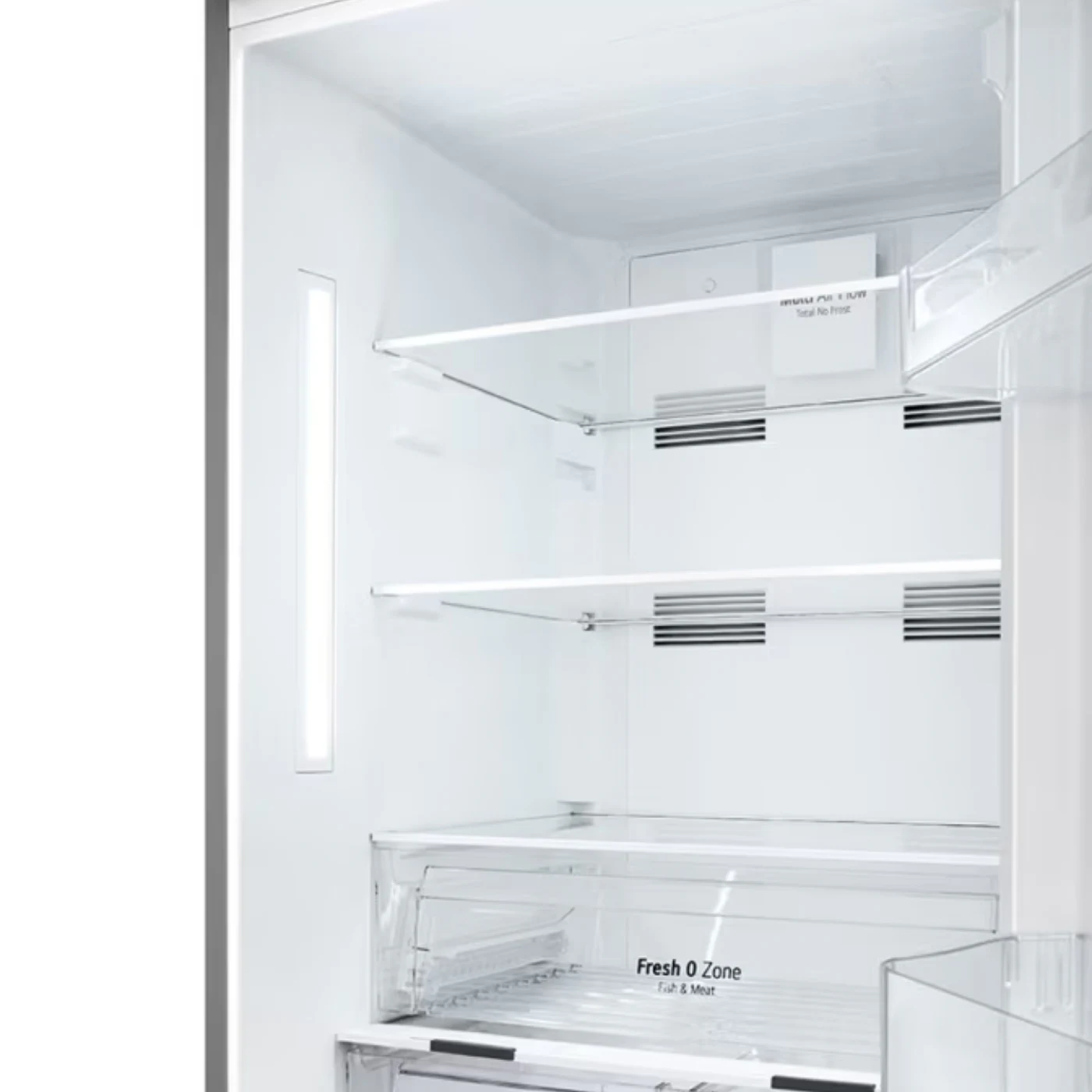 مزودة برفوف من الزجاج المقوى تتحمل الأوزان الثقيلة، تصميم بدون بروز جانبي للأبواب، مما يمنحها مظهرًا عصريًا وانسيابيًا.