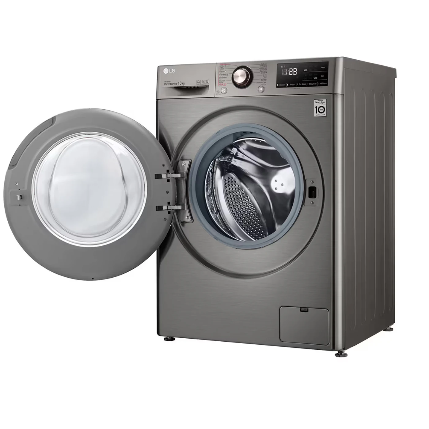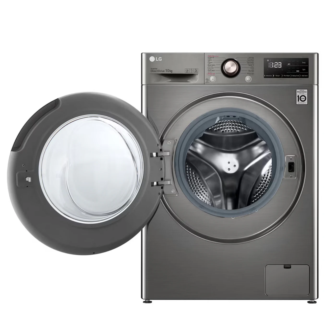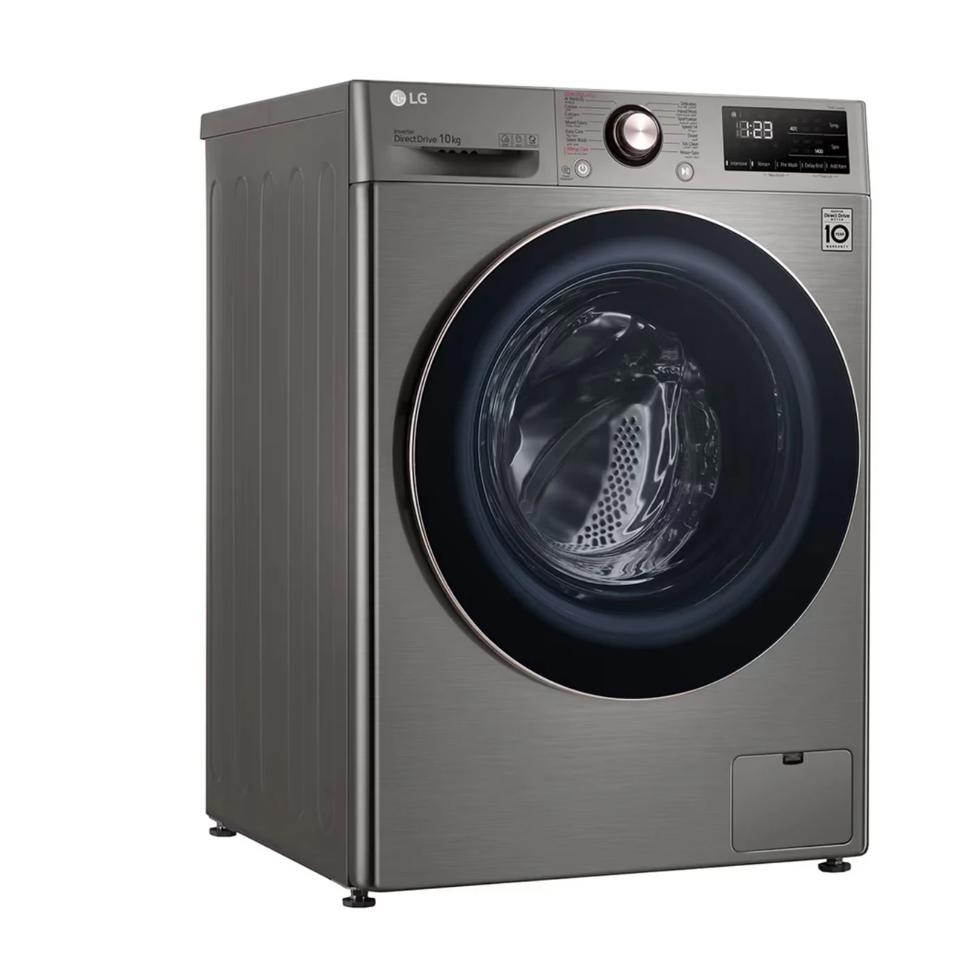 استمتع بتجربة غسيل متطورة مع غسالة إل جي فيفاتشي سعة 10 كجم باللون البلاتنيوم الفضي،