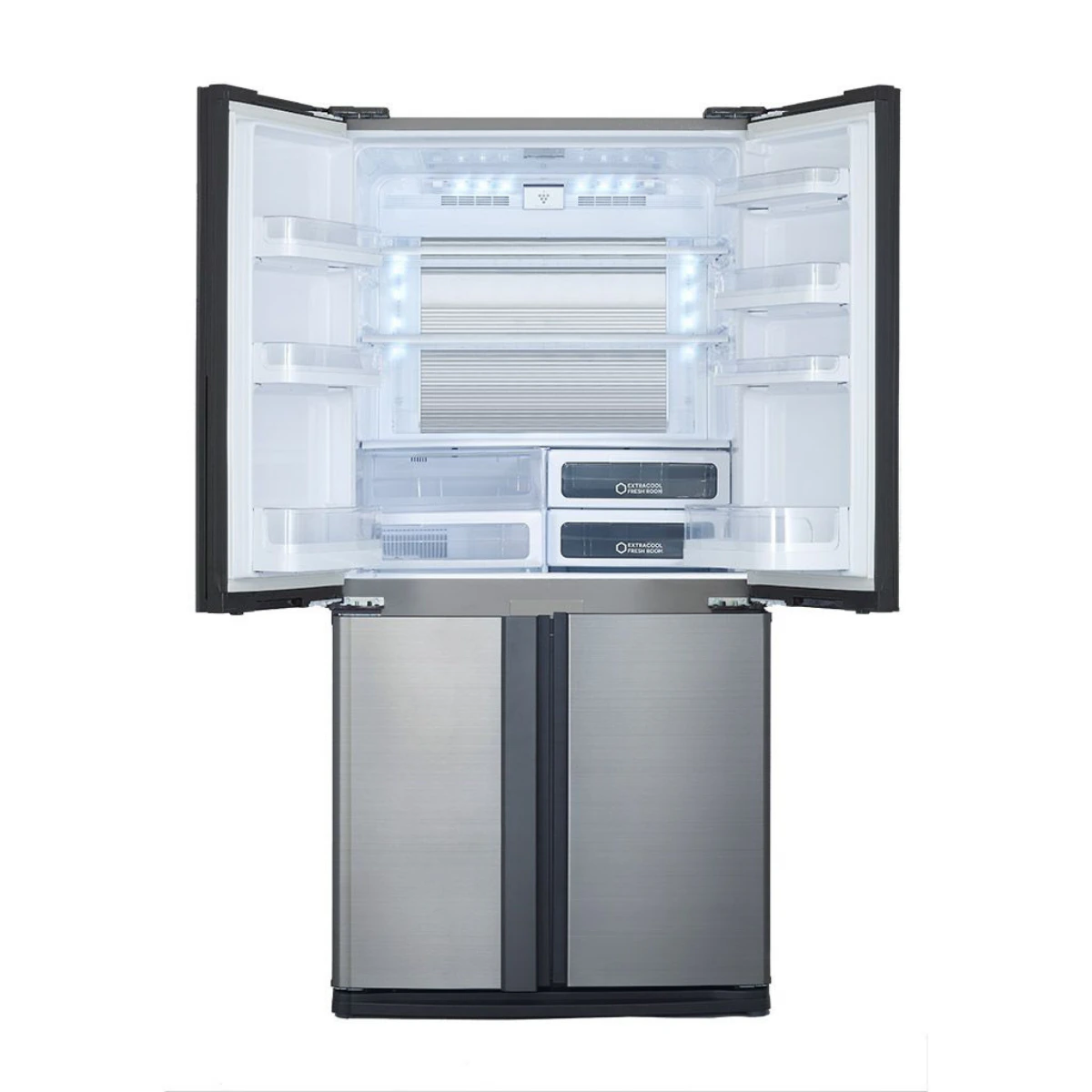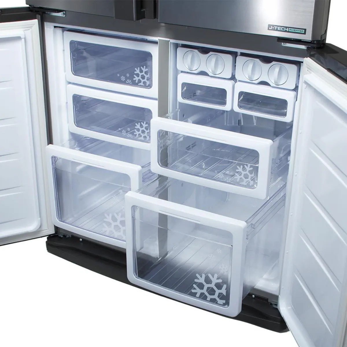 ثلاجة شارب نوفروست متقدم بسعة 605 لتر، بلون استانلس أنيق وتصميم فاخر بأربعة أبواب، مناسبة للعائلات الكبيرة. مزودة بتقنيات متطورة مثل الانفرتر، البلازما كلاستر، شاشة تحكم ديجيتال، وأنظمة تبريد متعددة، مما يمنح المستخدم تجربة تبريد ذكية وفعالة مع الحفاظ على الطاقة.