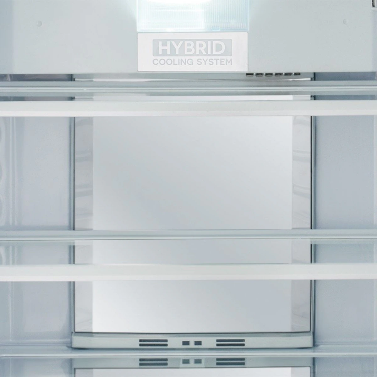 - Hybrid Cooling System: تبريد سريع ومتوازن في جميع أجزاء الثلاجة مع إزالة الرطوبة للحفاظ على نضارة الطعام.