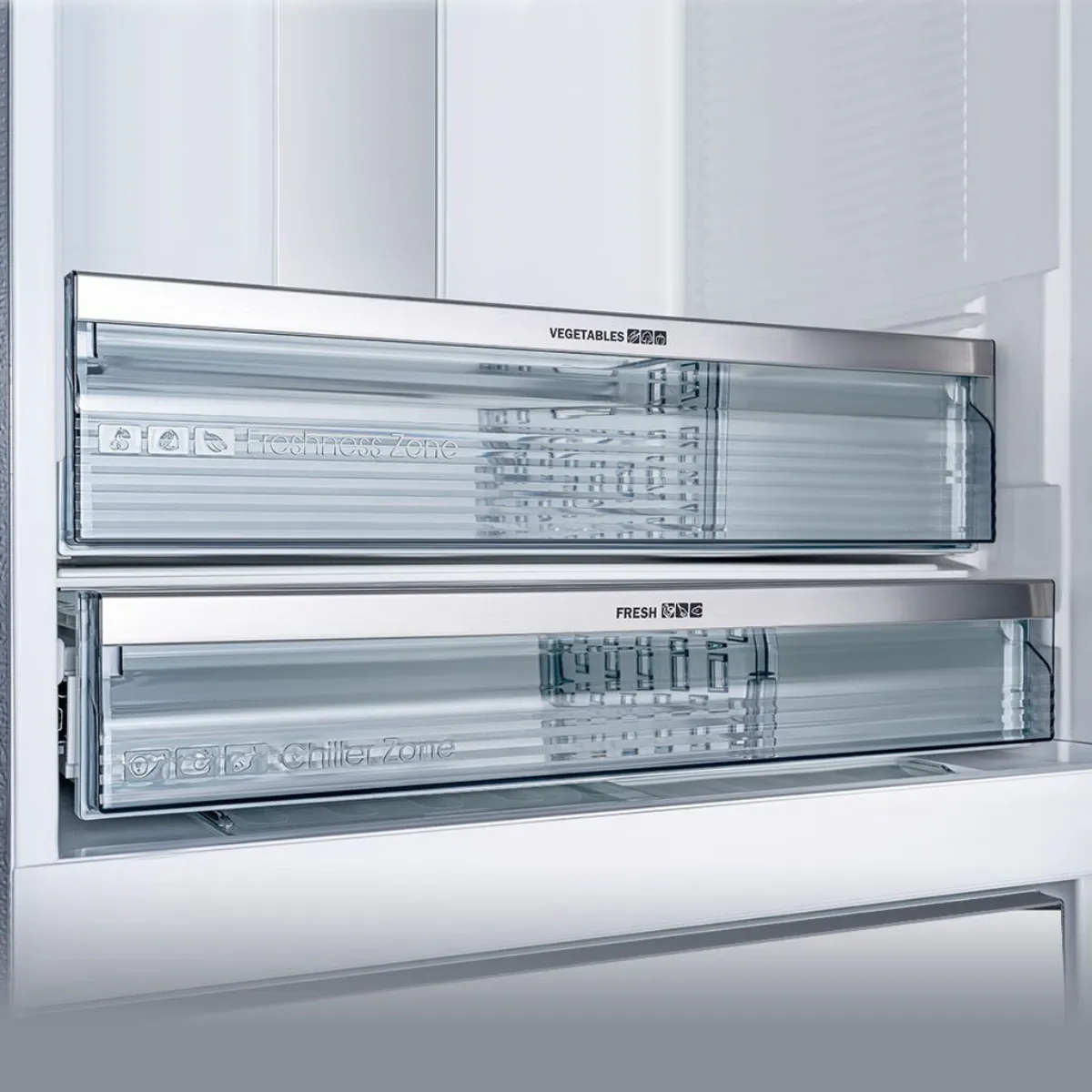 - Hybrid Cooling System: تبريد سريع ومتوازن في جميع أجزاء الثلاجة مع إزالة الرطوبة للحفاظ على نضارة الطعام.