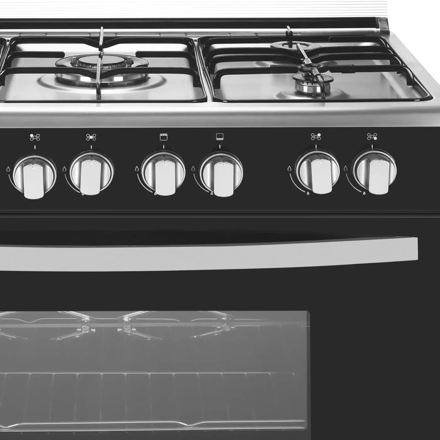 بوتجاز أسود 5 شعلات 90×60 مزوّد بشواية وإضاءة داخلية لتجربة طهي متكاملة ومظهر عملي مميز.