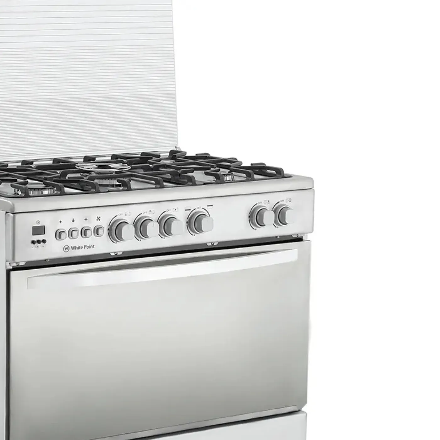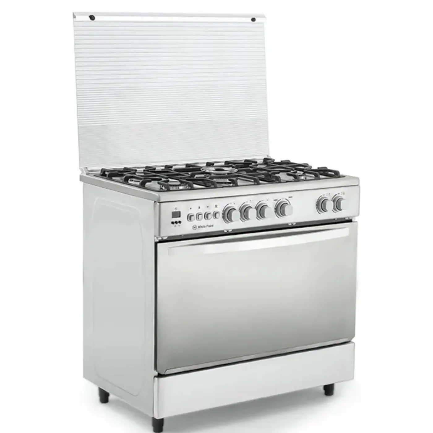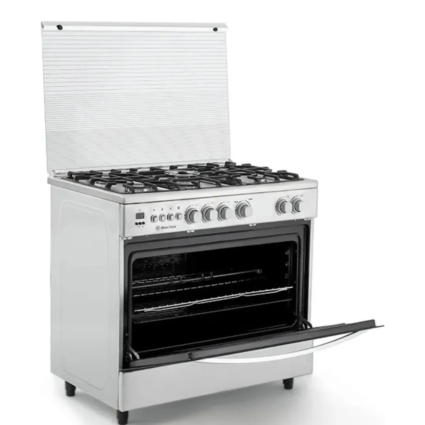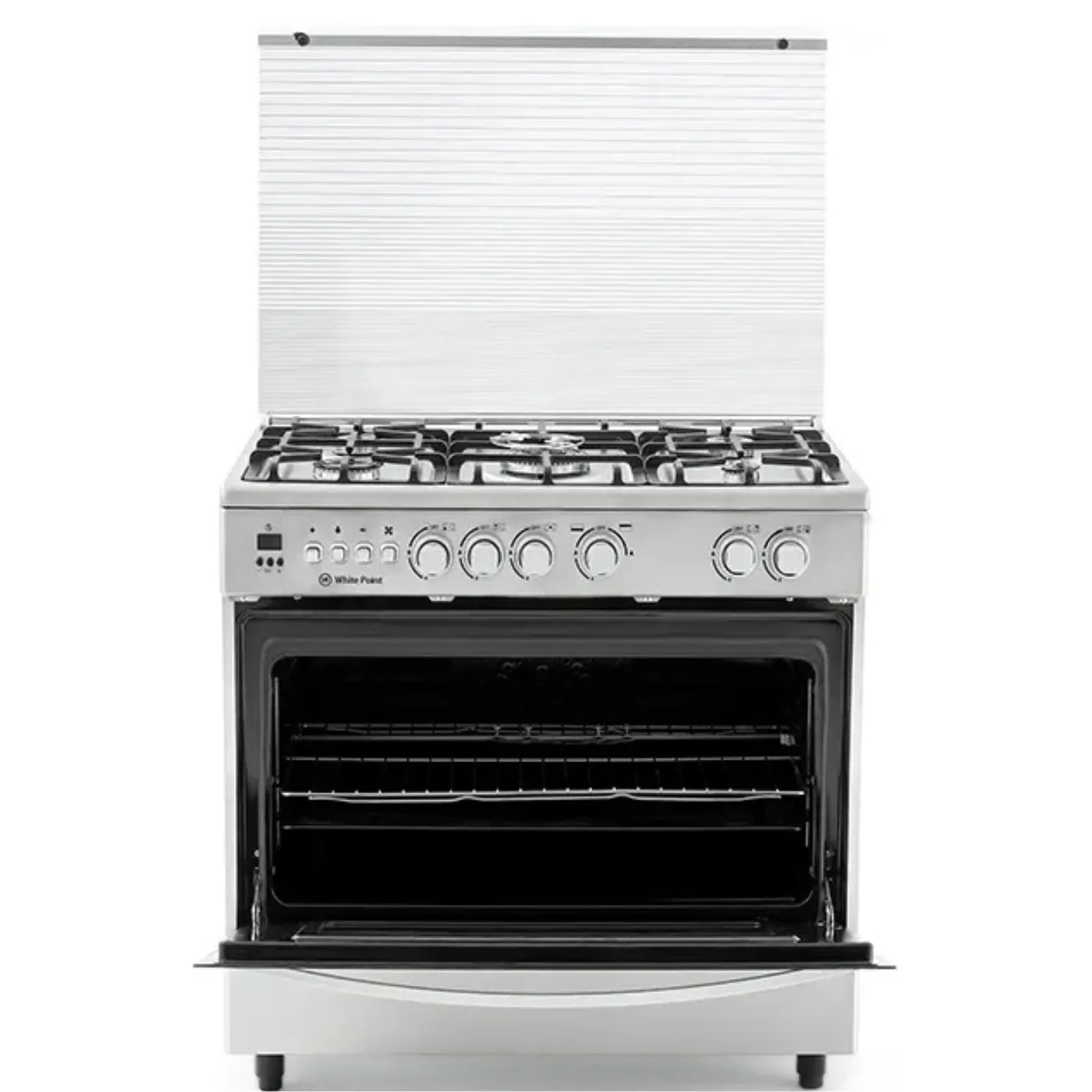 بوتاجاز وايت بوينت WPGC9060XTOCFSDAM هو طباخ غاز قائم بذاته بمقاس 90×60 سم، مصنوع من الستانلس ستيل بلون فضي أنيق، ويضم 5 شعلات غاز عالية الكفاءة، تايمر ديجيتال، مروحة توزيع حرارة داخلية، وحوامل زهر متينة، بالإضافة إلى درج تدفئة وغطاء زجاجي علوي.